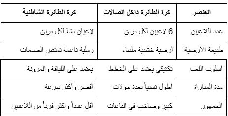 لكل أسلوب لعب خصوصيته، فهناك الفروق بين اللعب في الصالات المغلقة وعلى الشواطئ. يقدم الجدول التالي مقارنة مبسطة توضح أهم الفروقات بين النمطين: