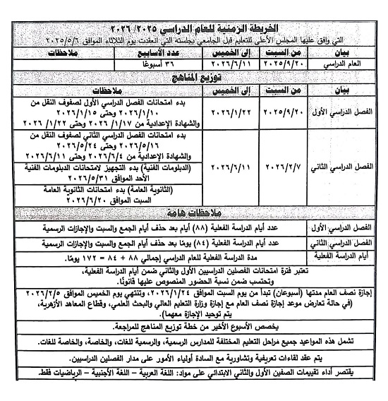 وقالت وزارة التربية والتعليم : سوف يراعي جدول امتحانات نصف العام 2026 ، عدم عقد أي امتحانات في أيام الأعياد تنفيذا لتعليمات وزير التربية والتعليم والتعليم الفني .